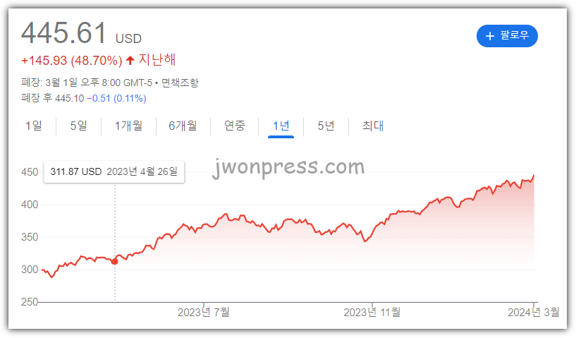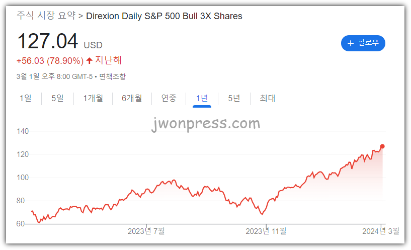 - SPXL : S&P 500 지수를 3배 추종하는 ETF